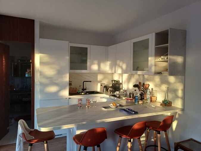 Mireille est fatiguée lorsque nous arrivons enfin, et je n’apprécie pas non plus les quelque 20 marches – toutes de hauteur différente ! – que je dois gravir dans la pente pour arriver à la maison. Mais notre studio est agréable et ma salle de bain superbe. La chambre de Mimi se trouve un étage en dessous et elle a aussi sa salle de bain. Nous avons toutes les deux la climatisation, ce qui est très appréciable, car ici, il fait encore 29 degrés le soir à la mi-août.